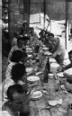 [Lucca : altopiano delle Pizzorne : campeggio estivo organizzato dalla "Sezione Escursionismo" dello Sporting Club Cucirini Cantoni Coats per i dipendenti dello stabilimento C.C.C. dell'Acquacalda : i campeggiatori seduti a tavola al momento del pranzo : agosto 1950 (CCF 2969)