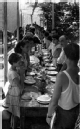 [Lucca : altopiano delle Pizzorne : campeggio estivo organizzato dalla "Sezione Escursionismo" dello Sporting Club Cucirini Cantoni Coats per i dipendenti dello stabilimento C.C.C. dell'Acquacalda : i campeggiatori in preghiera prima di sedersi a tavola per il pranzo : agosto 1950 (CCF 3159)