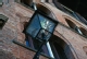 [Lucca : lampioncino di un palazzo in piazza San Michele, con l'immagine dell'arcangelo Michele della cuspide della chiesa riflessa su un vetro : ca. 1997 (CPS 24)]