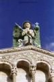 [Lucca : chiesa di San Michele in Foro : la statua dell'arcangelo Michele, posta sulla cuspide della facciata, con la luna sullo sfondo : marzo 2002 (CPR 582)]