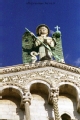 [Lucca : chiesa di San Michele in Foro : la statua dell'arcangelo Michele, posta sulla cuspide della facciata, con la luna sullo sfondo : marzo 2002 (CPR 583)]