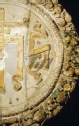 [Lucca : tondo in bassorilievo con il trigramma IHS, proveniente dalla chiesa di San Giuseppe, durante i lavori di restauro : particolare : gennaio 1979 (UTS 378)]