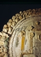 [Lucca : tondo in bassorilievo con il trigramma IHS, proveniente dalla chiesa di San Giuseppe, durante i lavori di restauro : particolare : gennaio 1979 (UTS 380)]