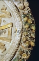 [Lucca : tondo in bassorilievo con il trigramma IHS, proveniente dalla chiesa di San Giuseppe, durante i lavori di restauro : particolare : gennaio 1979 (UTS 381)]