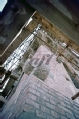 [Lucca : opera di restauro della Torre delle Ore : scorcio dal basso di spigolo della parte superiore con paramento in mattoni e mensole in pietra : ca. 1974-1975 (UTS 617)]