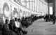[Gruppo di dipendenti della Cucirini Cantoni Coats di Lucca ritratti in parte seduti in parte in piedi sotto una galleria in occasione di una gita a Roma (ECF 3177)]