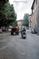 [Lucca : opera di restauro della Torre delle Ore : trasporto su un furgone con rimorchio delle nuove travi della cella campanaria : piazzale Verdi : ca. 1974-1975 (UTS 658)]