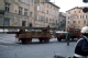 [Lucca : opera di restauro della Torre delle Ore : trasporto su un furgone con rimorchio delle nuove travi della cella campanaria : piazza Bernardini : ca. 1974-1975 (UTS 659)]
