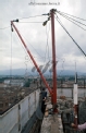 [Lucca : opera di restauro della Torre delle Ore : il bigo per il sollevamento alla cella campanaria delle nuove travi : ca. 1974-1975 (UTS 662)]
