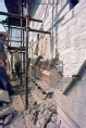 [Lucca : opera di restauro della Torre delle Ore : operai al lavoro nella ricostruzione dell'arco di una finestra monofora : 1975 (UTS 865)]