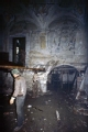 [Lucca : Palazzo Buonvisi durante gli interventi di restauro : affreschi e porta del pianoterra e locali delle cantine, con operai al lavoro, dopo la demolizione del solaio tra i due piani (UTS 1183)]