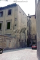 [Lucca : Palazzo Buonvisi durante gli interventi di restauro : veduta della facciata ovest e di una porzione della facciata meridionale dal vicolo adiacente al muro di cinta del giardino (UTS 1435)]