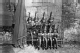 [Lucca : mercato dell'antiquariato : statuine di gendarmi in legno e testate di letto in ferro battuto in esposizione : ca. 1977 (CPR 2047)]