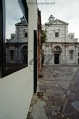 [Lucca : chiesa dei Santi Giovanni e Reparata : veduta della facciata e del suo riflesso in una vetrina : ca. dicembre 1997 (CPS 1126)]