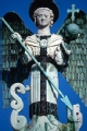[Lucca : chiesa di San Michele in Foro : la statua dell'arcangelo Michele, posta sulla cuspide della facciata : ca. aprile 1997 (CPS 1130)]