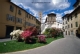 [Lucca : veduta di piazza San Frediano con allestimento floreale per la fiera di Santa Zita, eseguita con obiettivo fish-eye; sul fondo, la chiesa di San Frediano : ca. aprile 1997 (CPS 1186)]