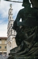 [Lucca : piazza San Michele : veduta tergale del monumento a Matteo Civitali dello scultore Arnaldo Fazzi, posto sotto la loggia di Palazzo Pretorio, e scorcio laterale della facciata della chiesa di San Michele : ca. aprile 1997 (CPS 1195)]