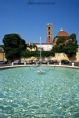 [Lucca : piazza Antelminelli : la vasca della fontana di Lorenzo Nottolini; sul fondo, il muro di cinta del giardino di Palazzo Bernardi, oggi Micheletti, e una porzione della facciata tergale della chiesa dei Santi Giovanni e Reparata con il campanile e la cupola del battistero : ca. agosto 1995 (CPS 1238)]