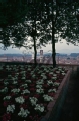 [Lucca : Torre Guinigi : la sommità con aiuole fiorite intorno ai lecci : maggio 1985 (UTS 1487)]