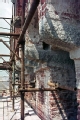 [Lucca : Torre Guinigi durante gli interventi di restauro : le nuove mensole in pietra a sostegno della parte aggettante : giugno 1973 (UTS 1505)]