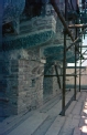 [Lucca : Torre Guinigi durante gli interventi di restauro : le nuove mensole in pietra a sostegno della parte aggettante : agosto 1973 (UTS 1507)]