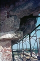 [Lucca : Torre Guinigi durante gli interventi di restauro : mensola in pietra a sostegno della parte aggettante rotta e quindi rimossa : giugno 1973 (UTS 1510)]