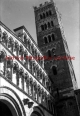 [Lucca : duomo di San Martino : esterno : veduta del campanile e della parte superiore della facciata senza il gruppo scultoreo raffigurante l'Elemosina di San Martino : 1946 (EGN 14)]