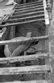 [Lucca : ex Ospedale Civico "Galli Tassi" : operaio al lavoro per la riparazione del tetto del lato est del chiostro : febbraio 1979 (UTR 2343)]