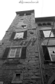 [Lucca : la Torre del Veglio o de' Ronzini, in piazza San Salvatore angolo via Calderia : scorcio dal basso della facciata su via Calderia : maggio 1980 (UTR 2364)]