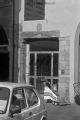 [Lucca : via Calderia : portone di edificio con architrave scolpito e stemma con il trigramma IHS : maggio 1984 (UTR 2410)]