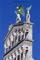 [Lucca : chiesa di San Michele : la cuspide della facciata, con la statua dell'arcangelo Michele : 16 febbraio 1997 (CPR 2586)]