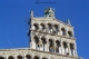 [Lucca : chiesa di San Michele : la cuspide della facciata stagliata contro il cielo, con la luna : 16 febbraio 1997 (CPR 2602)]