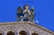 [Lucca : chiesa di San Michele : veduta della statua dell'arcangelo Michele, posta sulla cuspide della facciata, con la luna sullo sfondo : 16 febbraio 1997 (CPR 2607)]