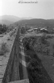 [Lucca : Guamo (Capannori) : veduta della campagna presso la via di Sottomonte con gruppo di abitazioni dall'alto delle arcate dell'acquedotto monumentale di Lorenzo Nottolini : agosto 1974 (UTR 2493)]