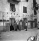 Davanti alla porta d'ingresso dell'albergo-ristorante "La Luna" si trovano quattro giovani uomini che conversano.