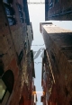 [Lucca : scorcio dal basso della Torre delle Ore e dell'antistante casa-torre in via Fillungo : ca. agosto 1995 (CPS 1848)]