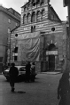 [Lucca : chiesa di San Giusto : veduta della facciata coperta da un'impalcatura : dicembre 1976 (CPR 3317)]
