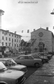 [Lucca : veduta di piazza San Francesco verso la chiesa con gli allestimenti per la giornata della Festa del lavoro : 1° maggio 1978 (CPR 3461)]
