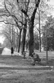 [Lucca : Mura urbane : scorcio della passeggiata presso il baluardo San Colombano con anziano signore seduto a leggere il giornale su una panchina : ottobre 1976 (CPR 3529)]