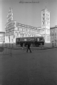 [Lucca : piazza San Michele : veduta con la chiesa di San Michele e un pullman della CLAP con scritte di protesta : febbraio 1977 (CPR 3681)]