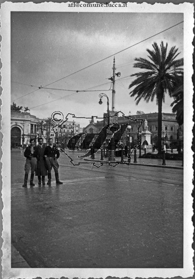 [Palermo : tre soldati in piazza Castelnuovo "Politeama" : ca. 1935-1940 (PLF 860)