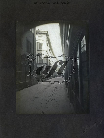 [Lucca : via Fillungo : scorcio con Palazzo Buonvisi, sede dell'Istituto Tecnico "Francesco Carrara", e il panificio Baccelli : ca. 1920-1925 (UCF 606)]