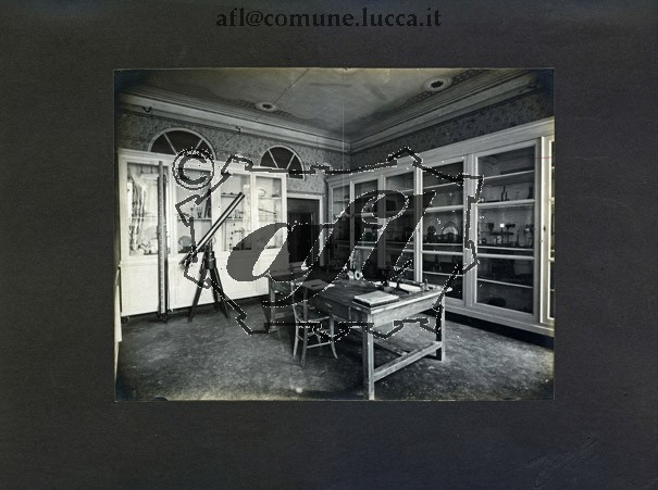 Fra le strumentazioni si riconoscono un cannocchiale astronomico Dollond su treppiede, un apparecchio di Pizzarello, un diapason con cassa di risonanza, un tubo sonoro di cartone e il tubo ad ancia al quale va applicato, un apparecchio con due paranchi e tre carrucole mobili, una bilancia idrostatica a tre piatti, un pendolo di Focault, un apparecchio di Riess, delle lamine flessibili per lo schiacciamento dei poli, uno spinterometro micrometrico a sfere, un ricevitore telegrafico di Marconi, un voltmetro amperometro a bobina mobile sotto campana di vetro, un tubo Roentgen per raggi X; indicazioni di Antonio Gemignani.