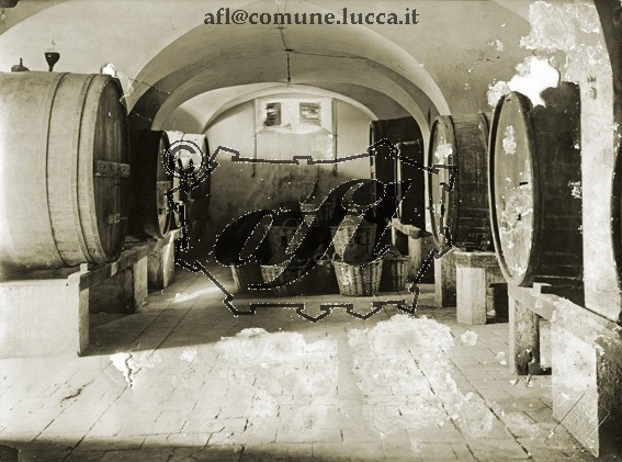 [Lucca : Mutigliano : Colonia Agricola : cantina con botti e damigiane : 1924 (VAF 269)]