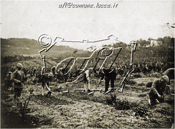 [Lucca : Mutigliano : Colonia Agricola : allievi e insegnante durante una lezione pratica di innesto delle viti : 1924 (VAF 283)