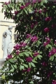 [Lucca : la statua di Naiade opera di Luigi Comolli, posta sopra la fontana di piazza San Salvatore, vista dietro una pianta di rododendro : ca. 1990-1995 (CPR 4110)]