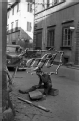 [Lucca : scalpellino al lavoro su una pietra della pavimentazione di via della Rosa : dicembre 1976 (CPR 4477)]