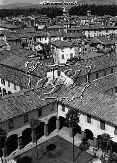 [Lucca : veduta verso nord dal campanile della chiesa di San Francesco, con un chiostro del convento di San Francesco : ca. 1967 (UDN 53)]