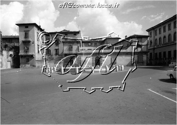 [Lucca : piazza Antelminelli : la fontana di Lorenzo Nottolini; sul fondo, i palazzi Sanminiati : ca. 1967 (UDN 159)]