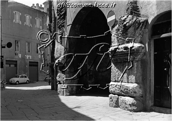 [Lucca : via dell'Anfiteatro : particolare di ingresso alla piazza omonima con i resti dell'anfiteatro romano : ca. 1967 (UDN 178)]